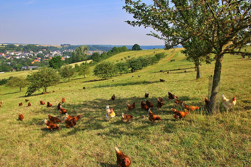 Wie groß ist euer Betrieb? Wir halten 7500 Legehennen, bauen dafür Bioland-Getreide an und ziehen Küken groß.