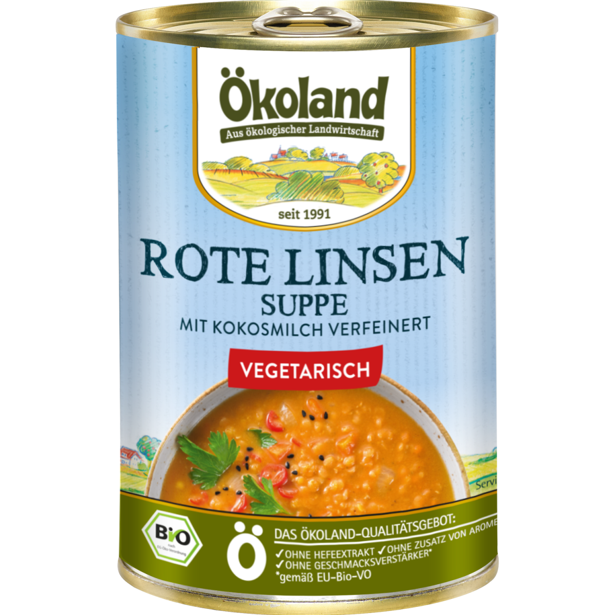 Linsen gehören zu den ältesten kultivierten Hülsenfruchtarten, sie stammen ursprünglich aus Vorderasien und liefern wertvolles Eiweiß. Die Rote Linsensuppe überzeugt durch eine feine, leicht stückige Konsistenz. Die roten Linsen geben zusammen mit der Gewürzmischung und der Kokosnote einen ausgewogenen, leicht fruchtigen und exotischen Geschmack. Das Produkt ergänzt die vegetarische Suppenauswahl mit besonderem Geschmackserlebnis in bewährter Ökoland-Qualität.